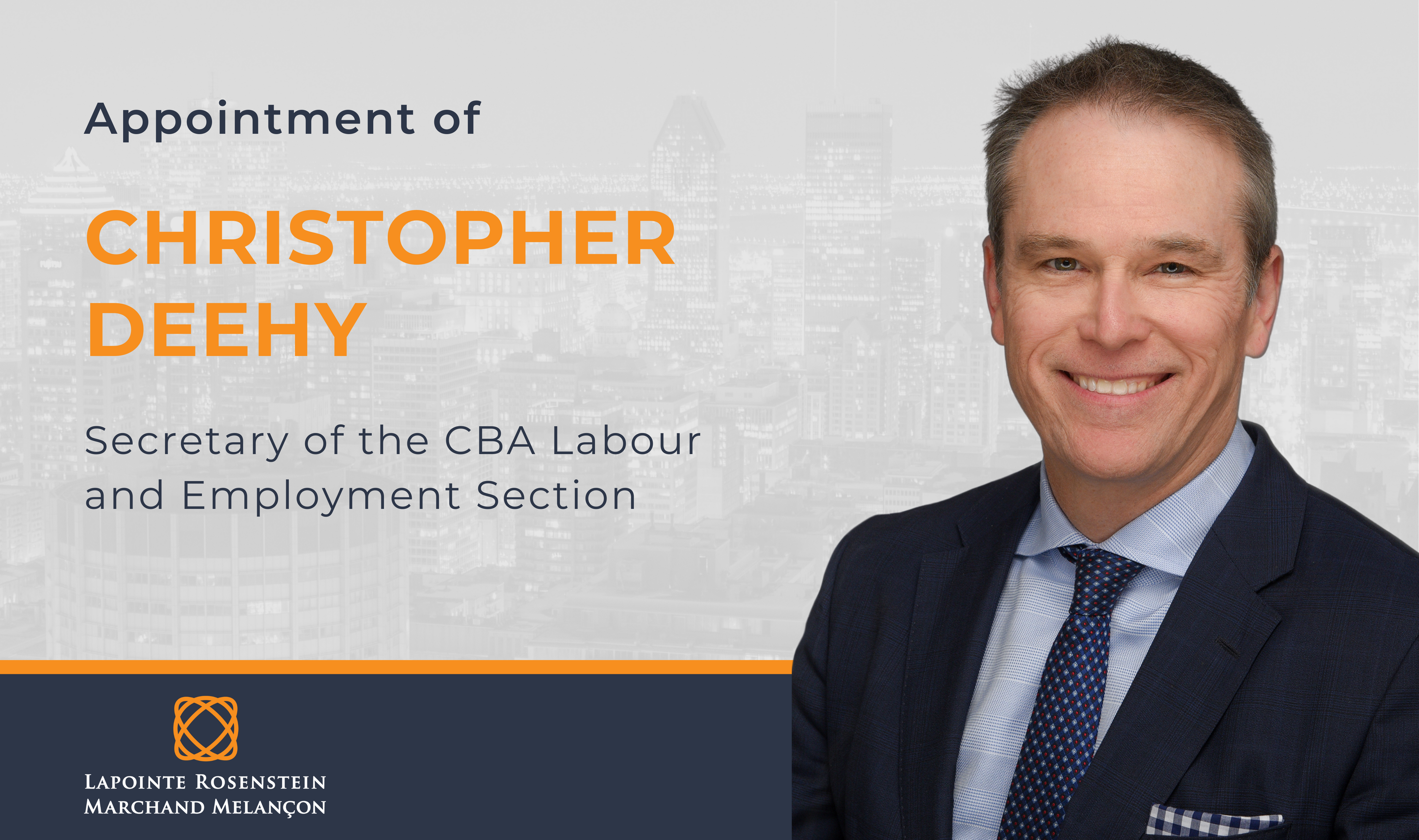 Christopher Deehy was appointed as Secretary of the CBA Labour and Employment Section.