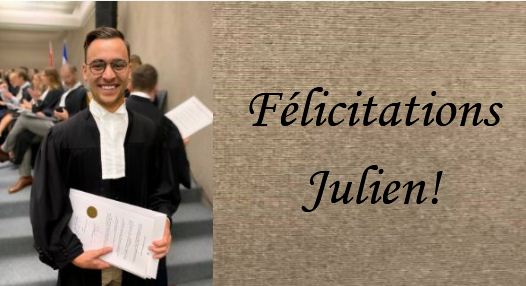 Nous sommes heureux d’annoncer que Julien Dubois vient d’être embauché après avoir complété son stage à nos bureaux. Il pratiquera au sein du groupe Litiges civil et commercial.