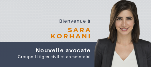 Nous sommes heureux d’annoncer que Sara Korhani s’est jointe à notre cabinet.