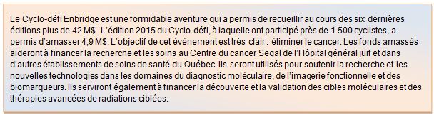 Soulignons que le cabinet peut compter sur la présence et l’appui de Me Howard Dermer, président de la Fondation de l’Hôpital général juif et avocat conseil au sein du cabinet. Ce dernier a présidé les deux premières éditions du Cyclo-défi Enbridge contre le cancer en 2009 et 2010.